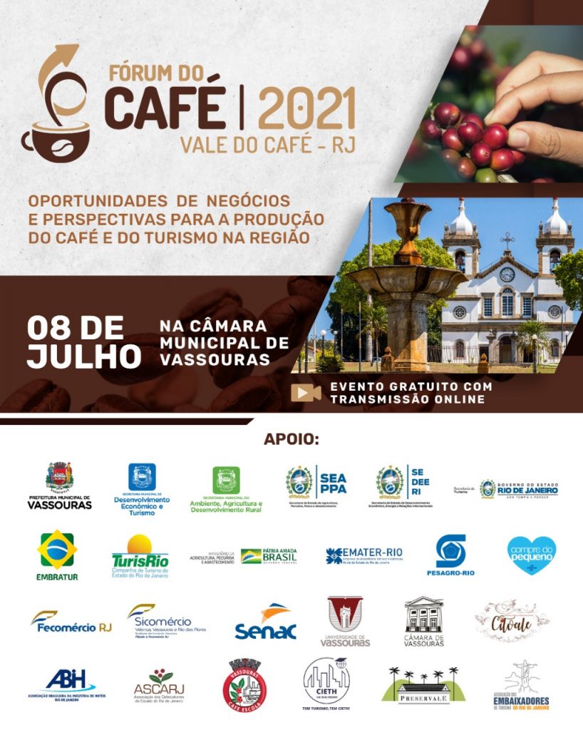 O mês de julho vai começar com a novidade de um Fórum virtual realizado pela Prefeitura de Vassouras. O evento que vai ocorrer no dia 8, na Câmara Municipal de Vassouras, de forma gratuita e com transmissão on-line terá o tema “Oportunidades de negócios e perspectivas para a produção do café e do turismo na região”. O evento contará com a presença do Secretário de Desenvolvimento Econômico do Estado, Secretário de Turismo, Secretário de Agricultura, EMATER, SEBRAE, FECOMERCIO e inclusive a ASCARJ que representa o café no estado do Rio de Janeiro.