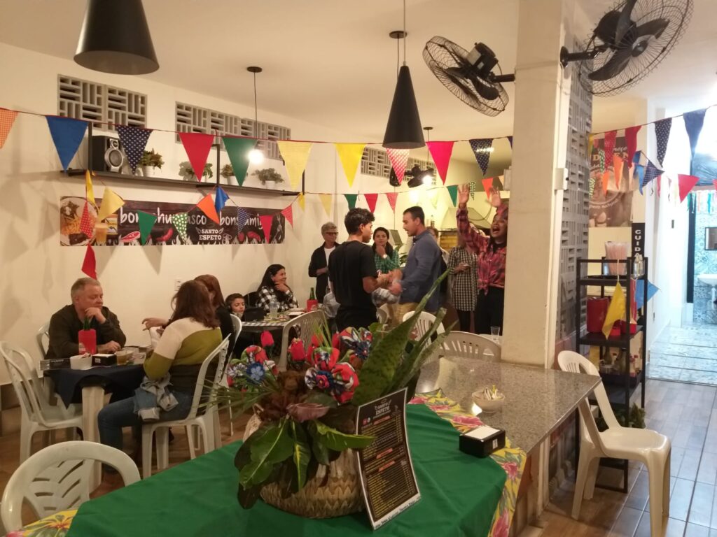 Uma mistura de bar e restaurante, que combina perfeitamente com happy hour ou jantar entre amigos. Afinal, Lelene, como é carinhosamente chamada pelos amigos e clientes, recepciona a todos com muito entusiasmo, carinho e atenção. Não tem como não se sentir acolhido e especial no Santo Espetto.