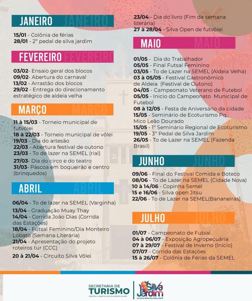 Silva Jardim lança seu Calendário de Eventos para o ano de 2024, consolidando a cidade como um destino turístico em ascensão. Com mais de 50 ações planejadas, o calendário abrange diversos distritos.